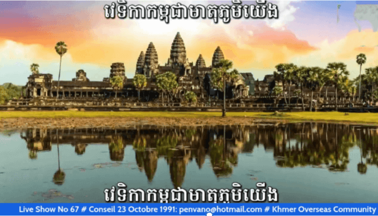 ភាគទី ១ នៃ «វេទិកាកម្ពុជាមាតុភូមិយើង ២០២៦» ការផ្សាយបន្តផ្ទាល់លើកទី៧៨ របស់ “យុទ្ធនាការសាមគ្គីសហគមន៍ខ្មែរក្រៅប្រទេស” និង “ក្រុមប្រឹក្សា ២៣ តុលា ១៩៩១” នៅថ្ងៃពុធ ទី១៨ មីនា ឆ្នាំ២០២៦ ក្រោមប្រធានបទ៖ «ខួបទី ៥៦ នៃព្រឹត្តិការណ៍ ១៨ មីនា១៩៧០ និង សាធារណរដ្ឋខ្មែរ» ។ វាគ្មិនចូលរួម៖ ១- លោក ប៉ែនវ៉ាណូ នៅប្រទេសបារាំង ២- លោក ឡាច សំរោង ឡូវែល សហរដ្ឋអាមេរិកនិង ៣- លោក សោម កុលវឌ្ឍន៍ នៅកាណាដា៕