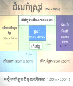 របៀបចែកដី ๑ ហិកតារជាឡូត៍សម្រាប់ដាំដំណាំប្រភេទផ្សេងៗ។